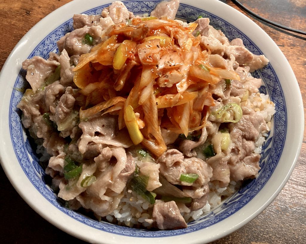 ちなみにネギ塩豚丼のネギは辛味ネギ作った余りの青いとこ(´・ω・`)
