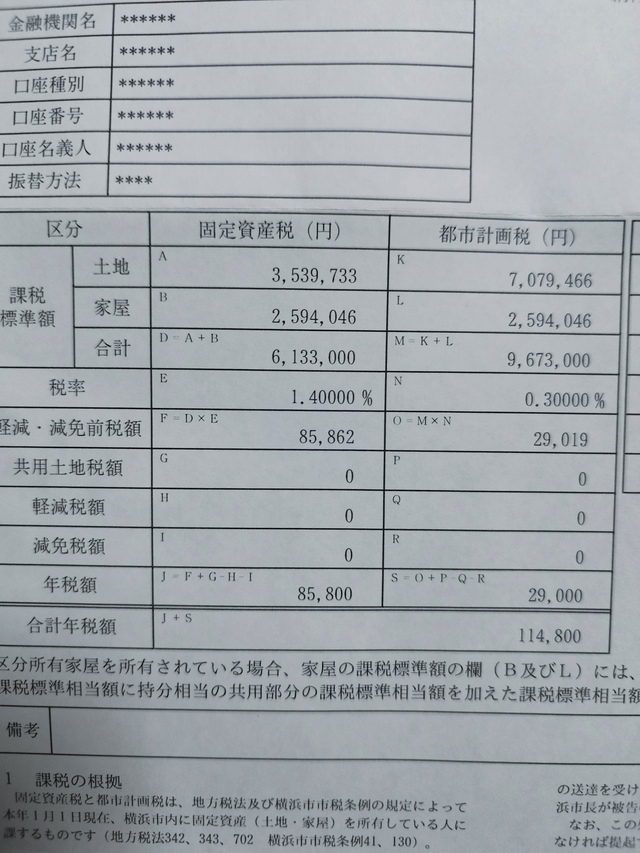 都市計画税って事は市街化区域に住んでるのか。